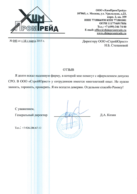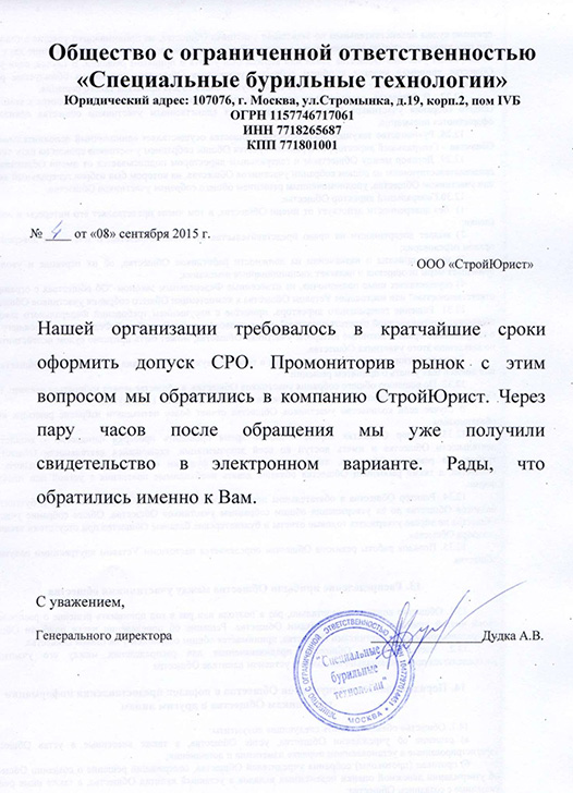 Отзывы клиентов "СтройЮрист" по вступлению в СРО в Саратове