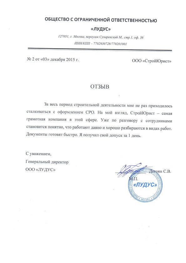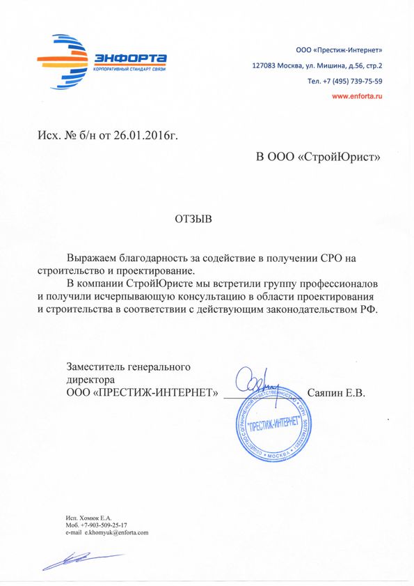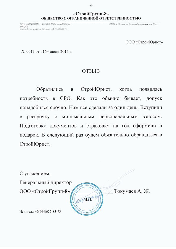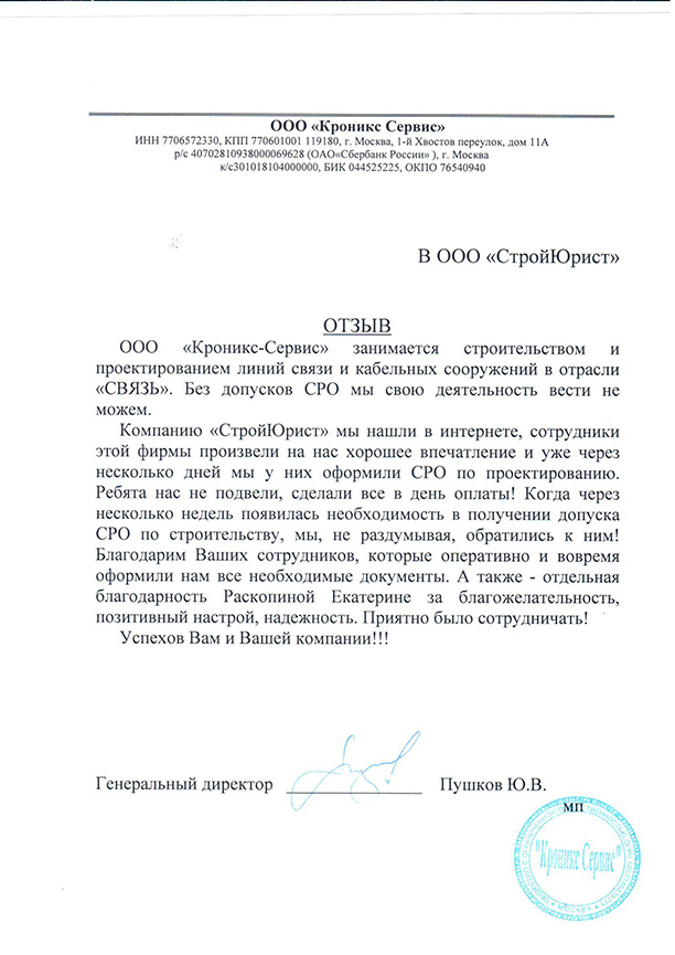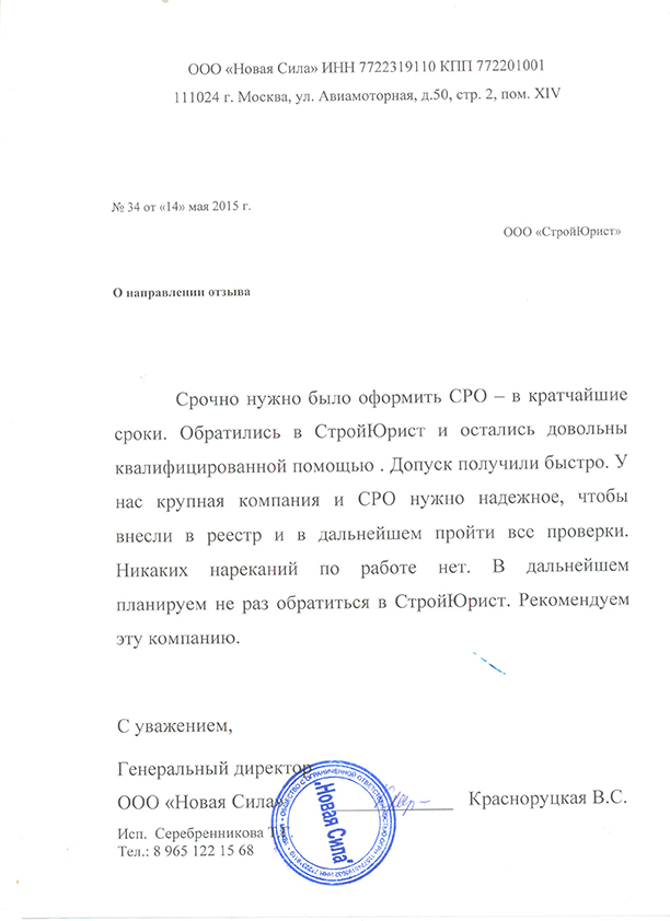 Отзывы клиентов "СтройЮрист" по вступлению в СРО в Саратове