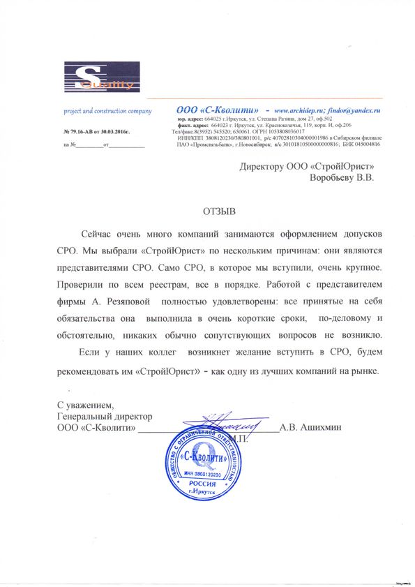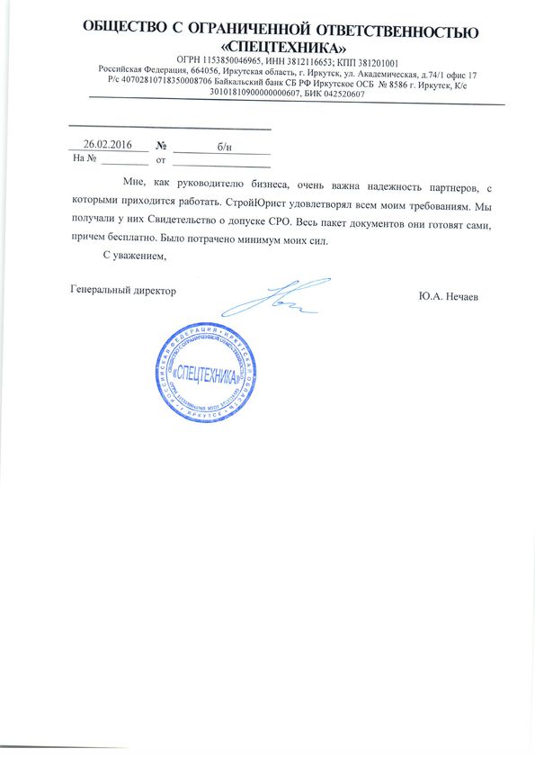 Отзывы клиентов "СтройЮрист" по вступлению в СРО в Саратове