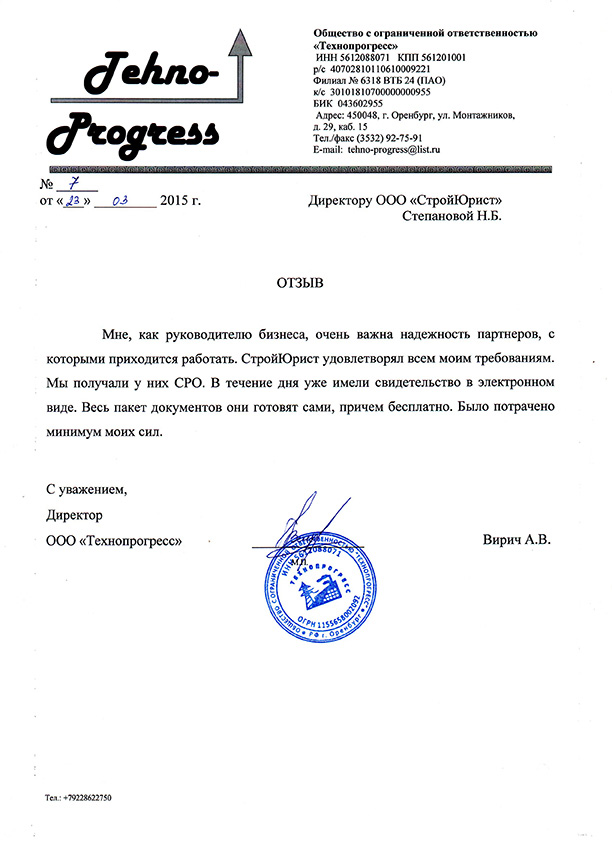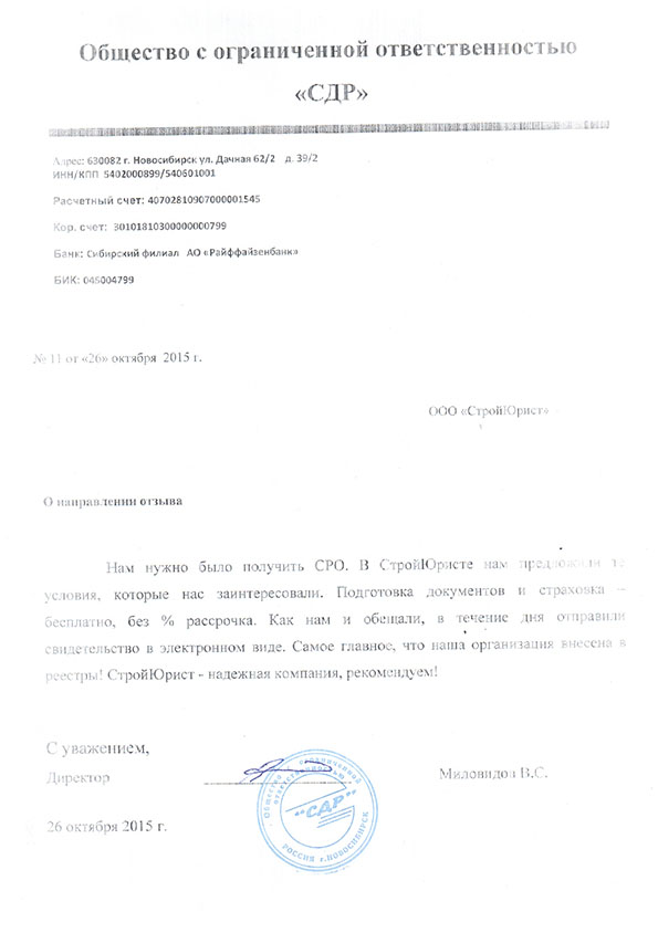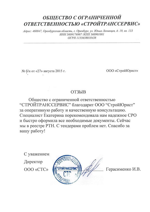 Отзывы клиентов "СтройЮрист" по вступлению в СРО в Саратове
