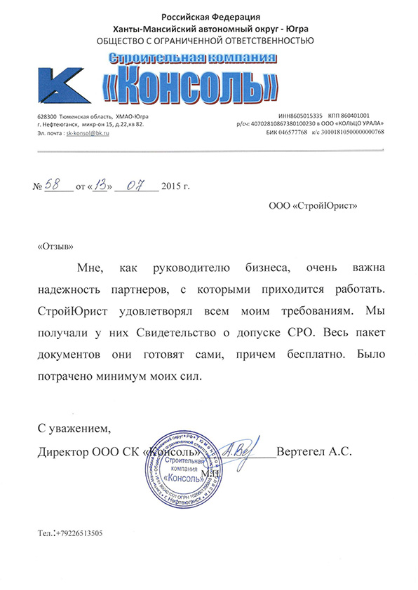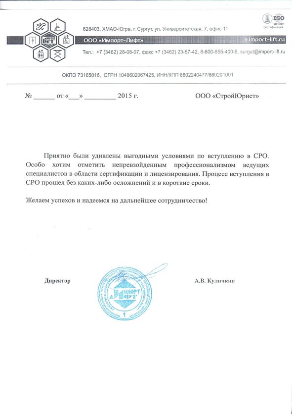 Отзывы клиентов "СтройЮрист" по вступлению в СРО в Саратове
