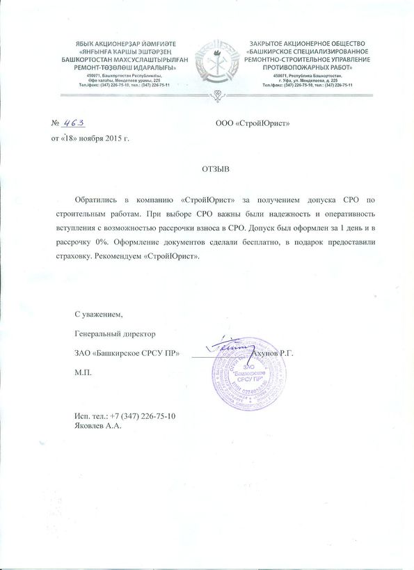 Отзывы клиентов "СтройЮрист" по вступлению в СРО в Саратове