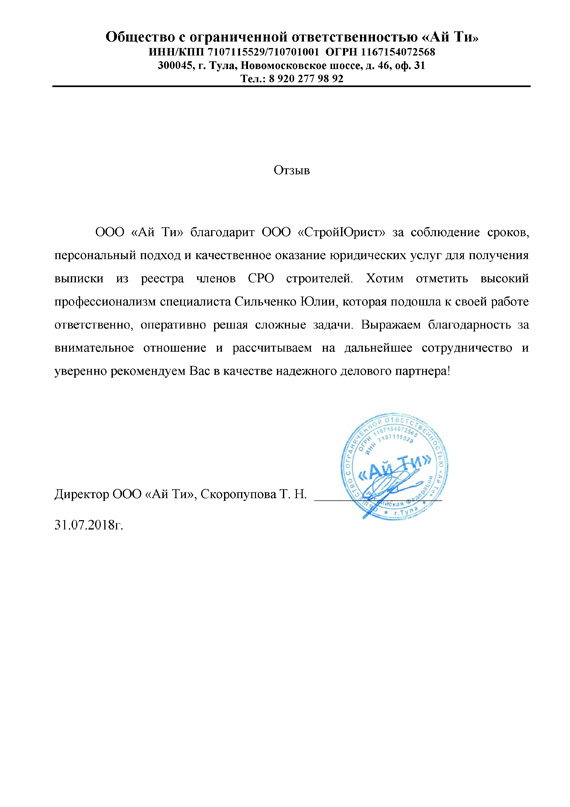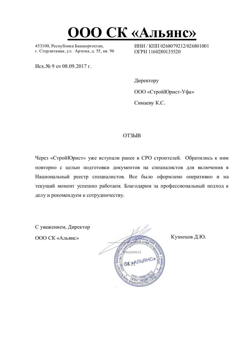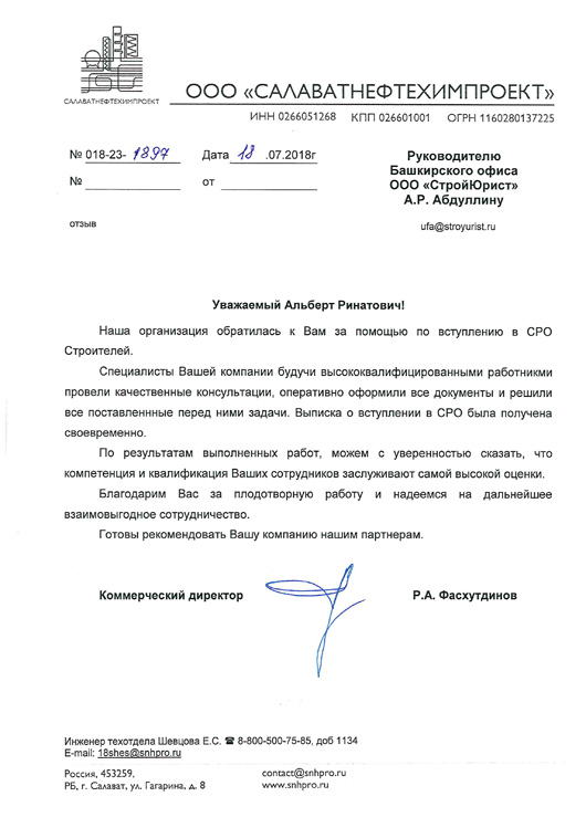 Отзывы клиентов "СтройЮрист" по вступлению в СРО в Саратове