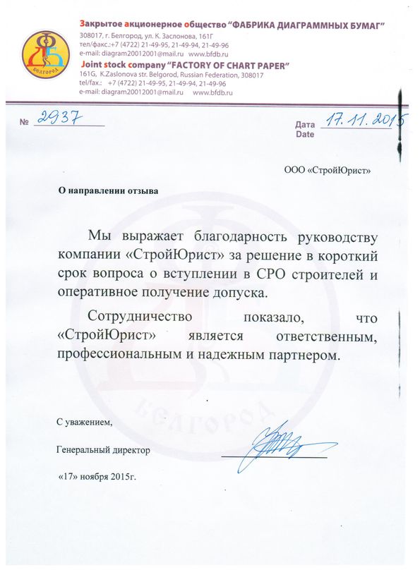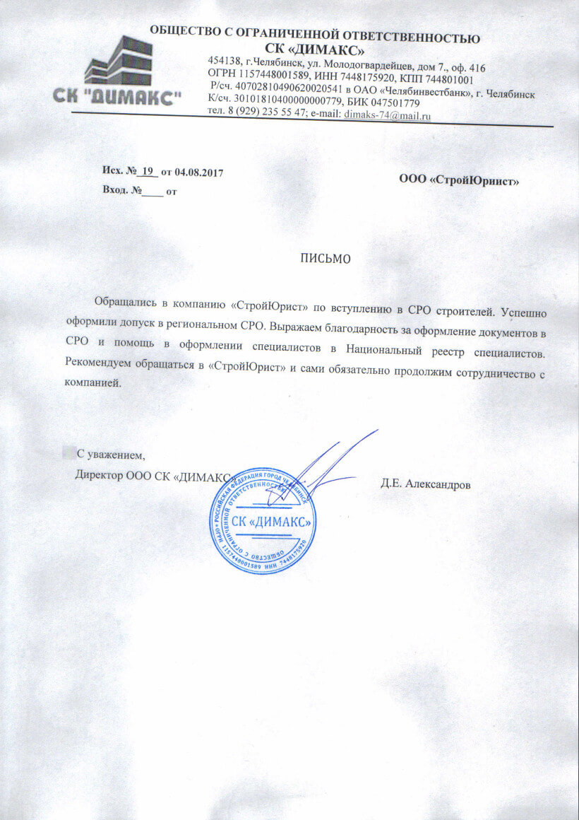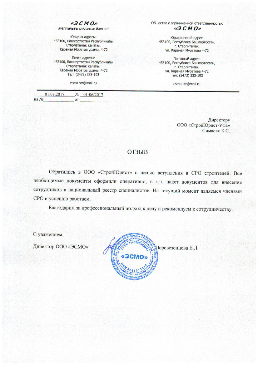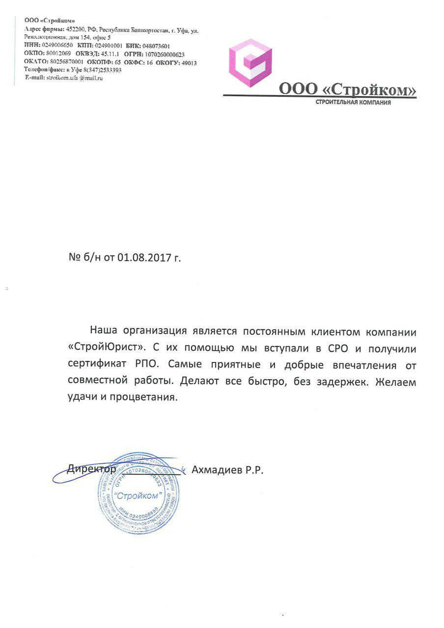 Отзывы клиентов "СтройЮрист" по вступлению в СРО в Саратове